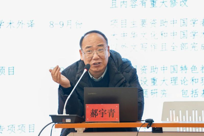 讲座中,郝宇青教授首先从国家社科基金项目类型、项目的评审规则、项目申报书的填写及申报书填写中的注意事项四个方面向老师们做了详细介绍。他从课题申报的最新动态和理论逻辑等方面具体展开,对如何做好项目选题、学科选择、研究内容、研究创新等方面进行了详细指导。