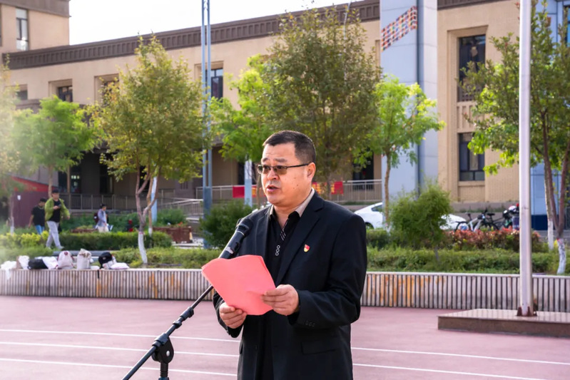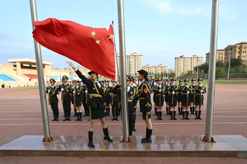 上午九时,迎着朝阳,英姿飒爽的国旗护卫队护送着五星红旗,迈着铿锵的步伐走上升旗台。伴随着《义勇军进行曲》激昂的旋律,五星红旗冉冉升起、迎风飘扬。全体师生精神饱满、庄严肃立,向国旗行注目礼。