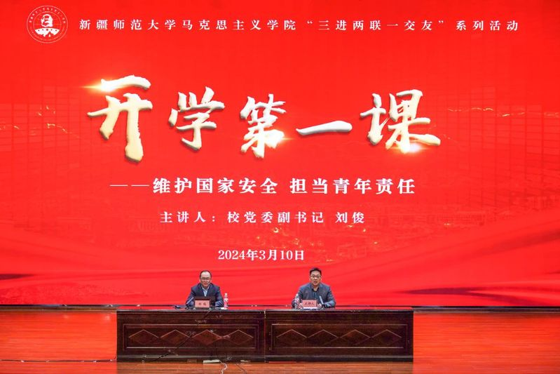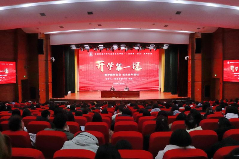 师生讲授题目为《维护国家安全,担当青年责任》的开学第一课。讲座由学院党委书记张峥主持。学院领导班子成员、全体辅导员、学生代表近600余人参加。