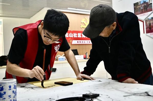 活动中,书法志愿者展示了草书、楷书、隶书、行书等四种字体的书法作品,并讲解了不同字体的演变史及所处的历史环境,加深了老人对中国书法文化的了解。志愿者还和大家分享了自己对于学习书法的益处认识,引发大家热烈讨论,大家在交流学习书法心得的同时,积极互动提笔创作,现场氛围温馨而融洽,在笔锋流转抒发共建和谐社会的真挚情感及美好祝愿。