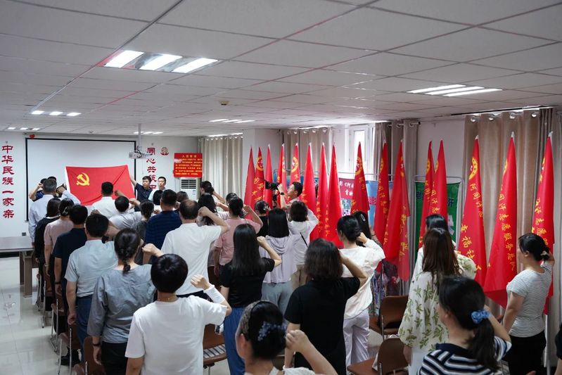 党委书记张峥带领全体教师在阿同汗社区重温了入党誓词,教师们表示将以实际行动践行阿同汗精神,传播正能量,让这种金子般的精神号召更多人积极投身公益事业。
