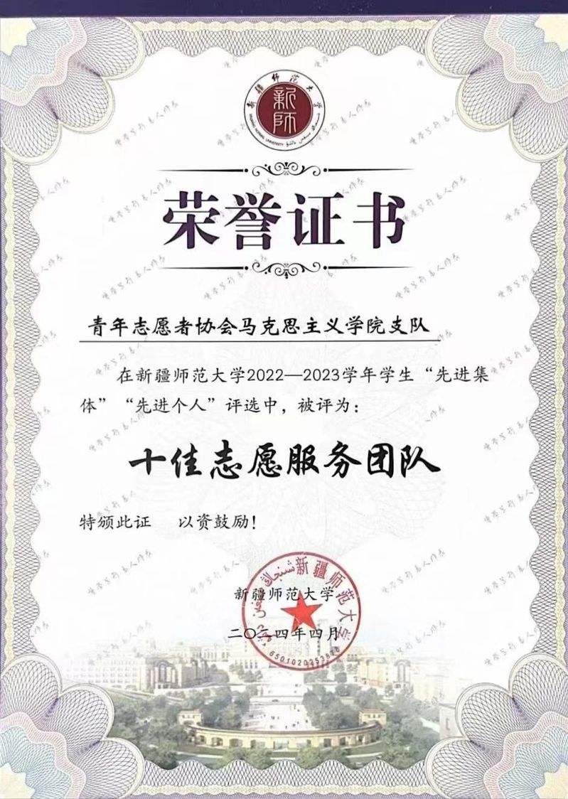 校级优秀社会实践团队,团队事迹得到中青网、新疆共青团、新疆教育报等多家媒体宣传报道。
