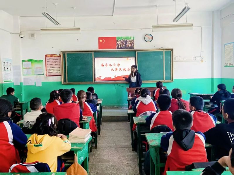 第26届研究生支教团。在教学工作中,担任小学五年级道德与法治及英语科目教学,覆盖百余名学生。除日常教学外,她同支教团一起组织了丰富的校园活动,同时,独立策划并开展趣味思政课——民族团结一家亲,营造良好的校园学习氛围。