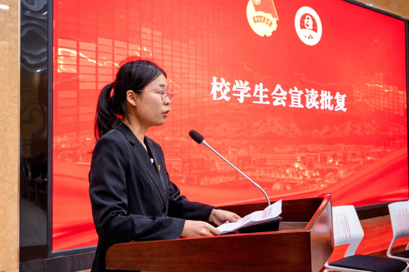 校学生会执行主席刘月宣读会议召开批复
