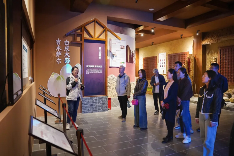 在吉木萨尔县大蒜文化科普馆,老师们了解了大蒜的种植技术、加工流程和市场价值,以及当地如何通过文化产业赋能乡村振兴,推动大蒜产业高质量发展。