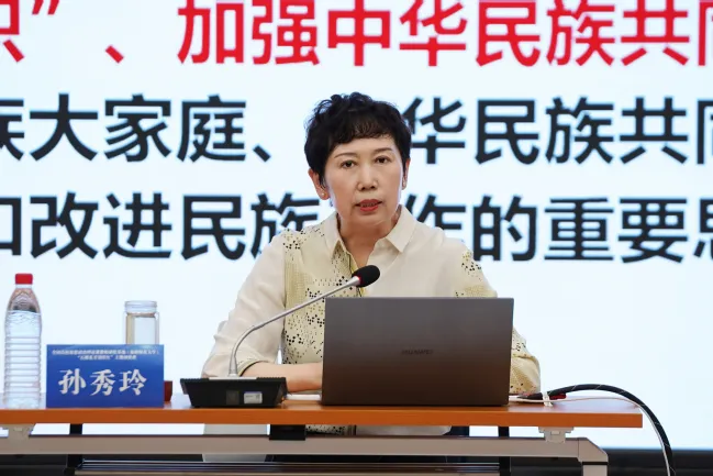副校级领导、学院学术院长孙秀玲教授以“构筑中华民族共有精神家园的理论与实践”为题进行首场专题教学。