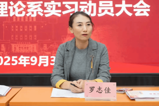 罗志佳在动员讲话中,从深化专业认知、规范实践行为、坚守安全底线三个方面提出具体要求。她强调需立足学科培养目标,以专业标准为基、实践能力提升为要、综合素养锤炼为旨,杜绝应付心态;主动衔接学院与实习单位,落实任务并积累基层经验;筑牢安全防线,确保实习有序、学有所获。