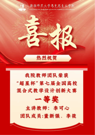 李可心老师担任主讲人,董新强、李筱老师共同参与的《国外马克思主义》课程教学团队,以 “以学生为中心” 的先进混合式教学理念为引领,构建了逻辑严密、环节精妙的教学实施体系,通过线上线下深度融合的教学模式,有效提升了课程教学质量与学生学习效果,凭借突出的综合表现荣获大赛一等奖。